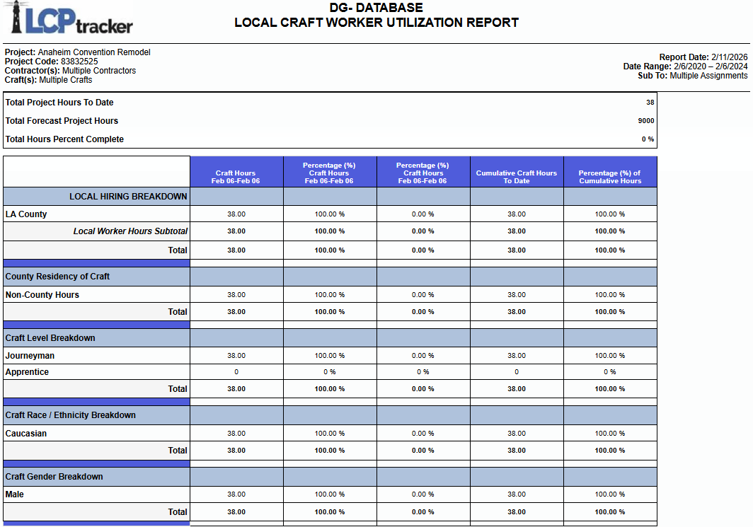 Note: The report name is different than the name used to run the report. The report will be called Local Craft Worker Utilization Report