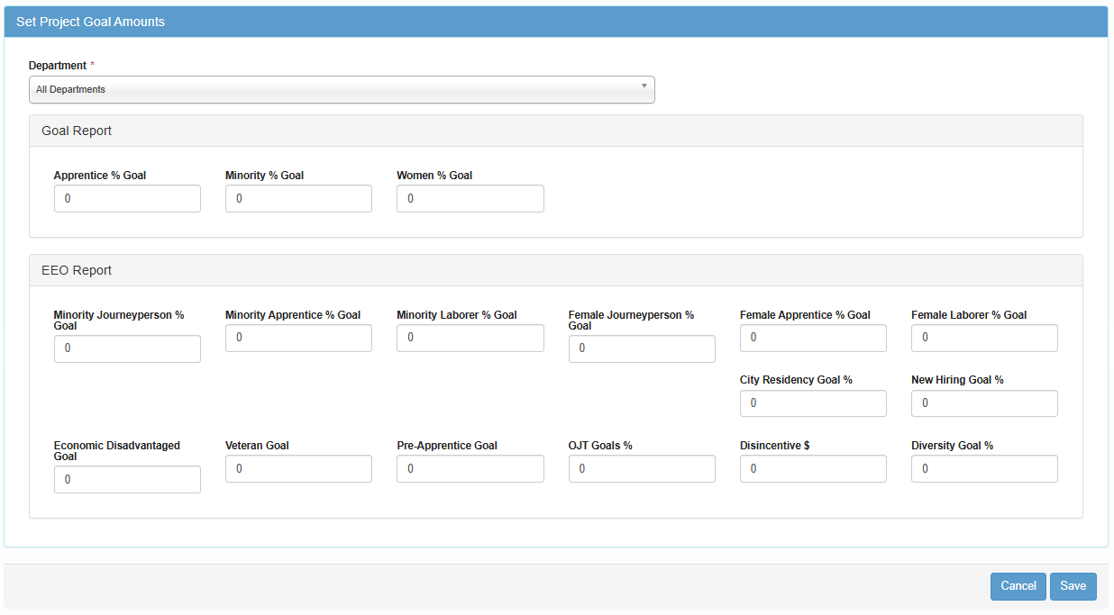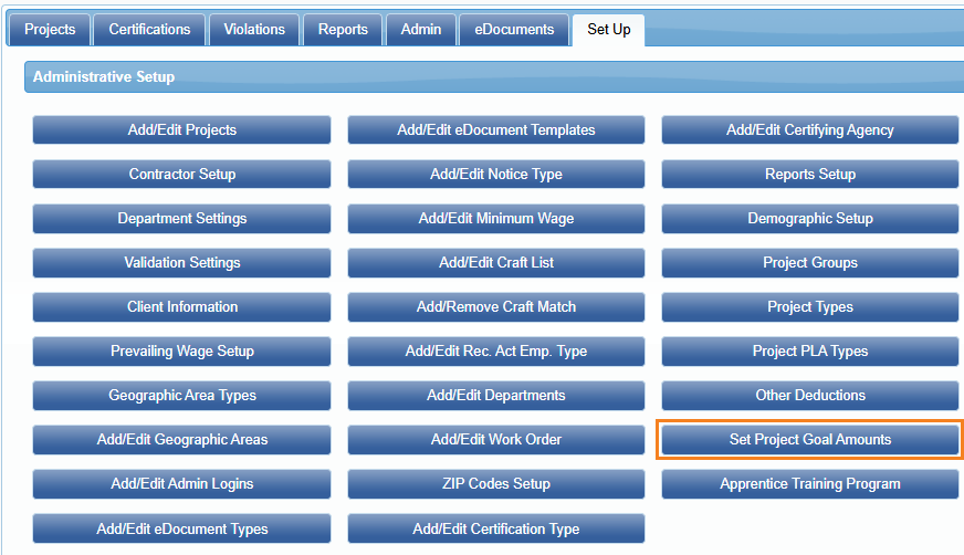 Users with a full administrator role can now establish goal amounts by department under Set Up>Set Project Goal Amounts.